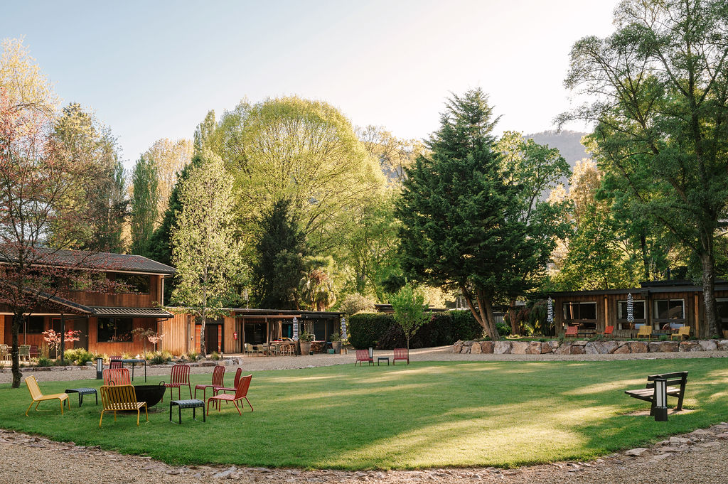 Centrally located in Harrietville, Bomen offers beautifully crafted accommodation options and facilities for singles, couples, families and groups across its cabins and lodges, all set within breathtaking, seasonal gardens on the banks of the Ovens River.